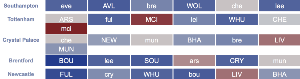 Fewer clubs have better medium-term runs on home turf than Brentford, with David Raya (£4.6m) and co facing Bournemouth, Southampton, Crystal Palace, Fulham and Leicester in their next five matches at the Gtech Community Stadium.