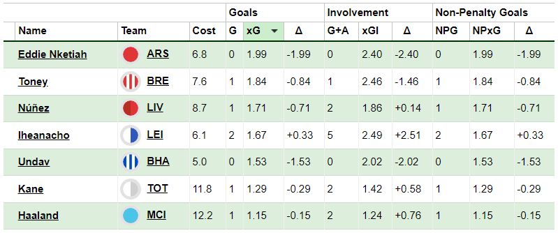 Above: Nketiah has the best expected goals (xG) tally amongst forwards between Gameweeks 22 and 24