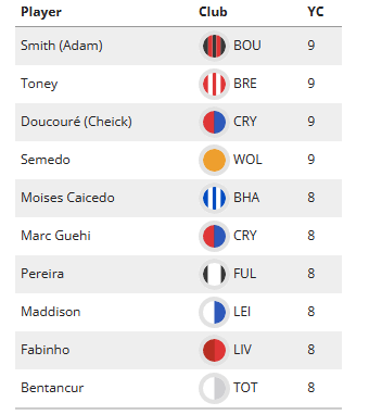 James Maddison (£8.3m) and Andreas Pereira (£4.3m) are among the cluster of players on eight cautions, meanwhile.