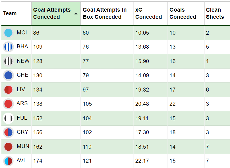 Perhaps it was a regression to the mean, as Newcastle’s underlying stats are still strong since Gameweek 22. They’re the third-best for allowing shots (128), ranking fourth for conceding big chances (21) and expected goals (xGC, 15.90). It’s just they have a knack for always conceding that sole goal.