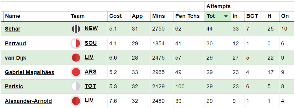 What Schar can also offer is goal-scoring potential. By some distance, he is the defender with the most attempts, despite only netting in Gameweek 1 against Nottingham Forest.