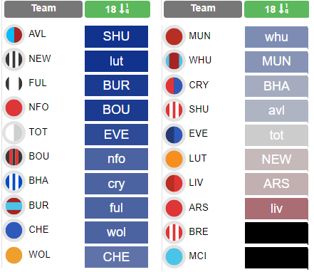 BLANK GAMEWEEK 18: FIXTURE OVERVIEW
