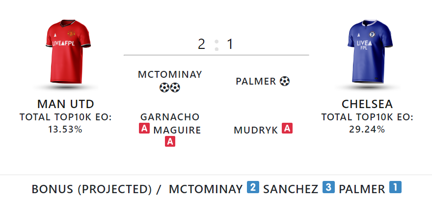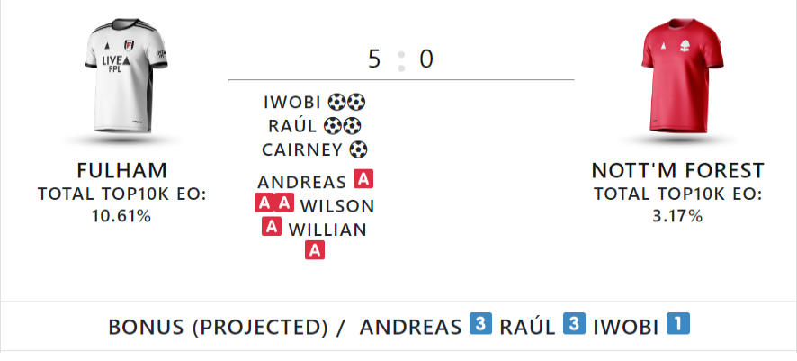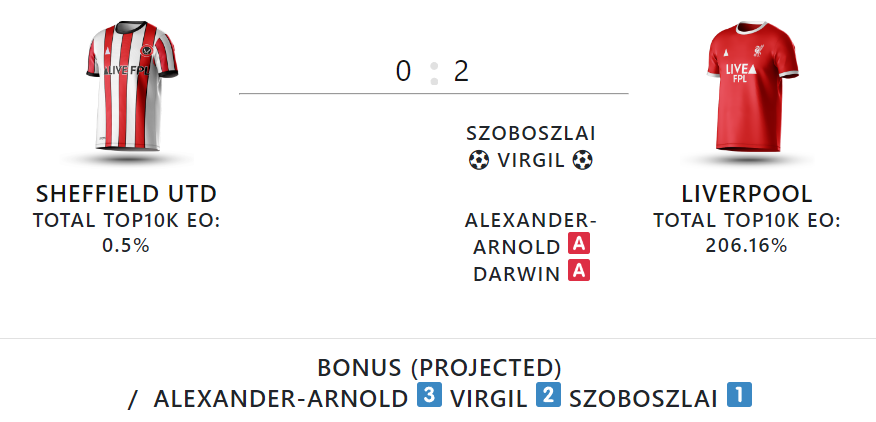 The goals, assists and projected bonus points come courtesy of LiveFPL.