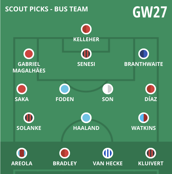 We’ve put together our Scout Picks ‘bus team’ for Gameweek 27 of Fantasy Premier League (FPL).