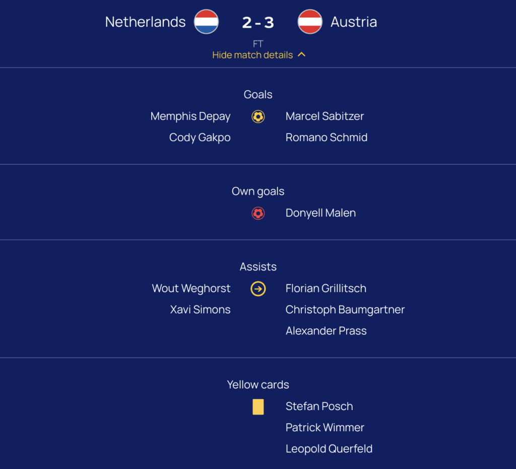 The summary of goals, assists, bookings etc comes from the UEFA site.