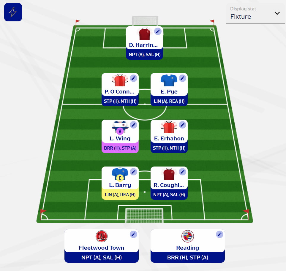 Four wins in their last five league matches and scoring 2+ goals in all but one suggests buying into the Reading frontline could be essential this week, especially if you’re seeking out Double Gameweek players. Contributing to their recent form is Lewis Wing (M), who has banked four goal contributions in his last four league games. The lack of midfield options has forced me into selecting a player with a safe floor. Lincoln play two matches at home which adds more appeal, but the fact Ethan Erhahon (M) consistently picks up additional points for interceptions and key passes makes me think he could be a solid option.