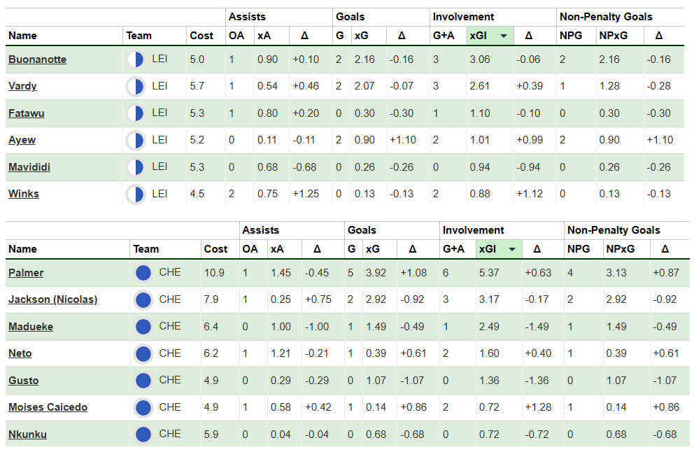 Over their last six Gameweeks, these are both sides’ best players for expected goal involvement (xGI):