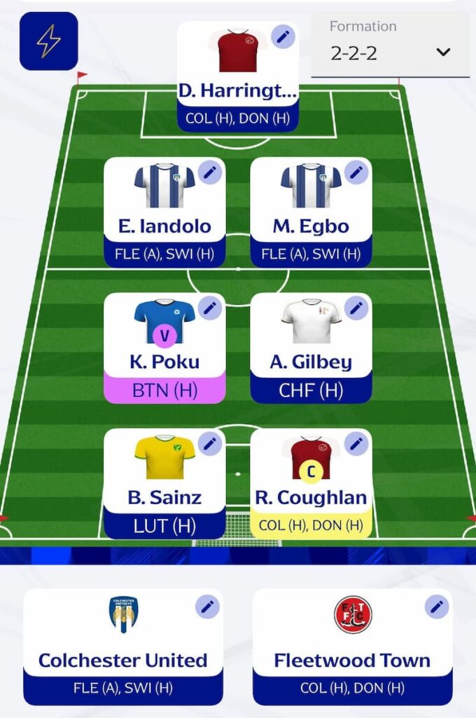Although tempted by a back three, I also really like this week’s attacking options. Therefore, I’m going with just a couple. Although they too have a Double Gameweek, Colchester seriously lack viable attackers and because of this, I’ve opted to grab two from their defence.