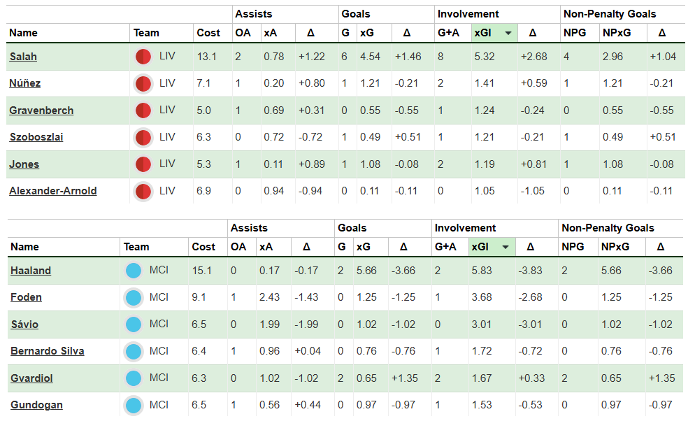 Over their last six Gameweeks, these are both sides’ best players for expected goal involvement (xGI):