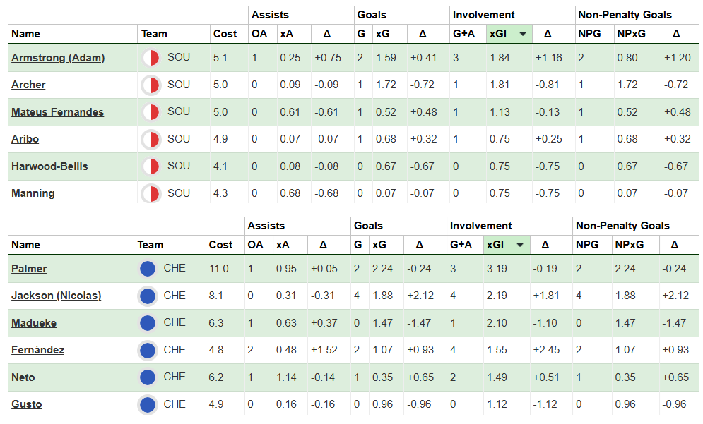 Over their last six Gameweeks, these are both sides’ best players for expected goal involvement (xGI):