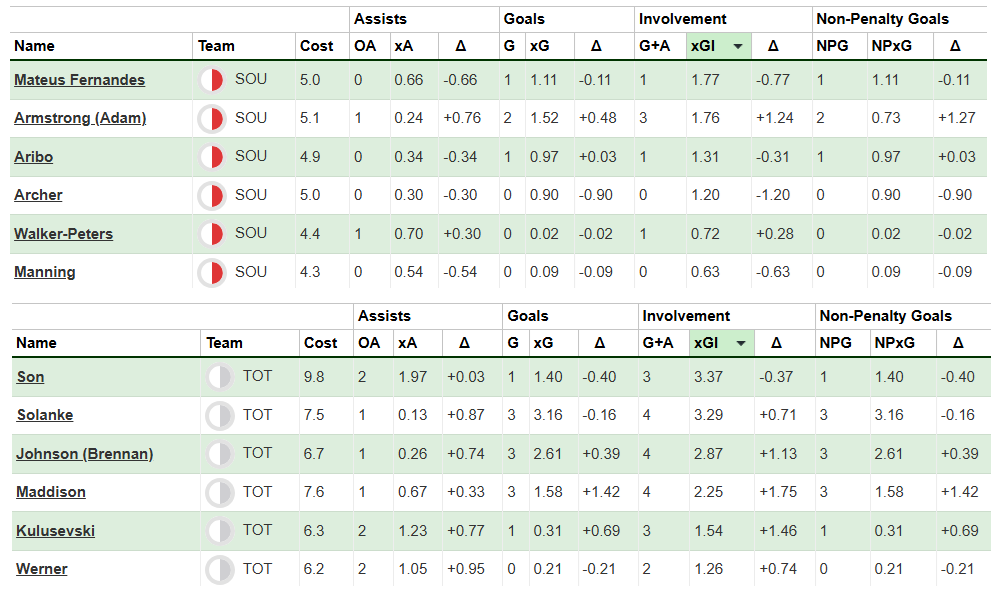 Over their last six Gameweeks, these are both sides’ best players for expected goal involvement (xGI):