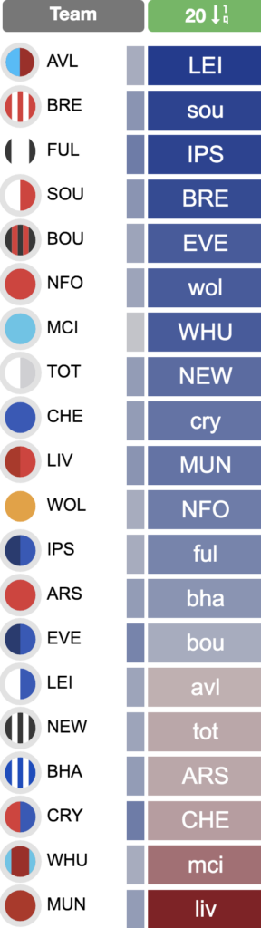 Above: The Gameweek 20 fixtures sorted by difficulty on our Season Ticker