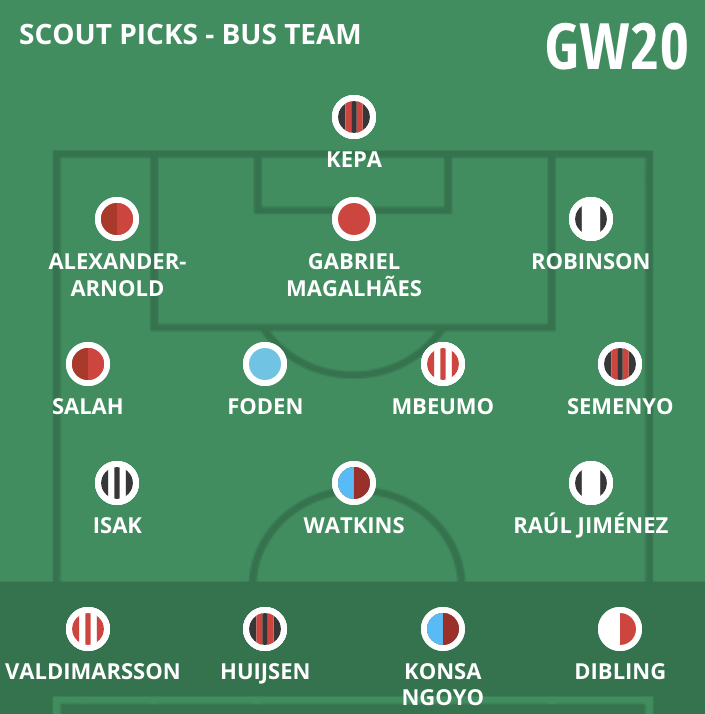 GAMEWEEK 20 BUS TEAM