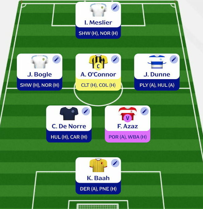 This week with some L1 and L2 sides doubling, but all Championship sides doubling, I have opted for a very Championship heavy side this upcoming week. It is a side made up of both differentials and popular picks, but all out on the double gameweek assets.