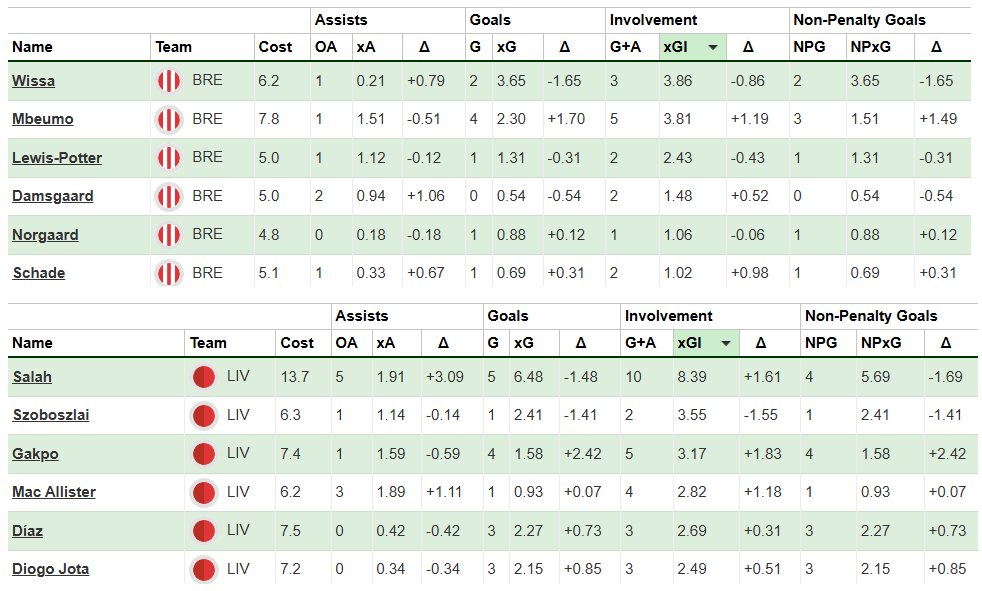 Over their last six Gameweeks, these are both sides’ best players for expected goal involvement (xGI):