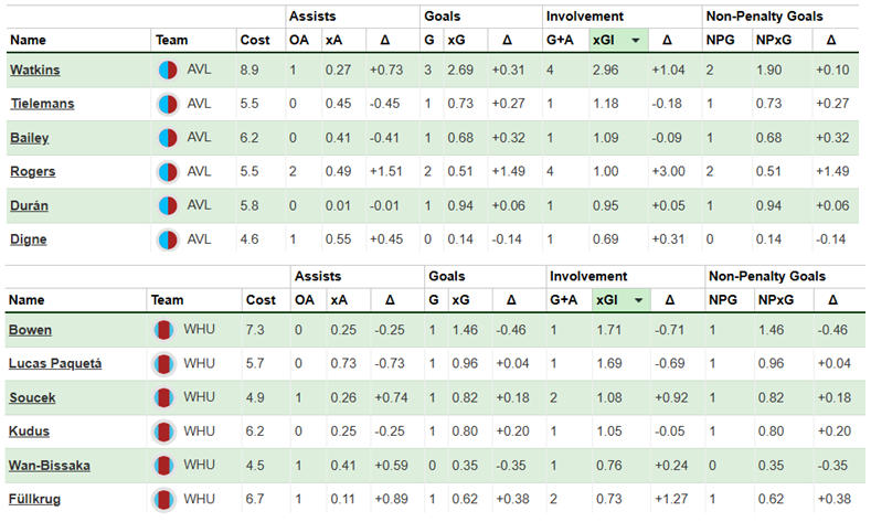 Over their last six Gameweeks, these are both sides’ best players for expected goal involvement (xGI):