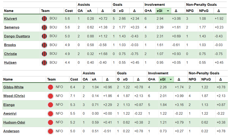 Over their last six Gameweeks, these are both sides’ best players for expected goal involvement (xGI):