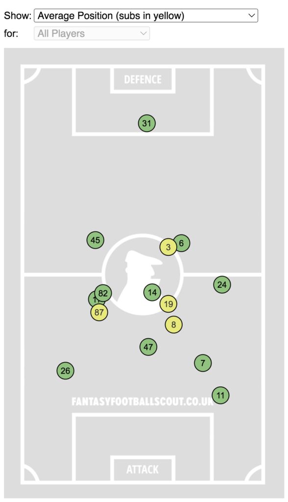 Above: Man City’s average position map v Liverpool in Gameweek 26, including Omar Marmoush (No 7)