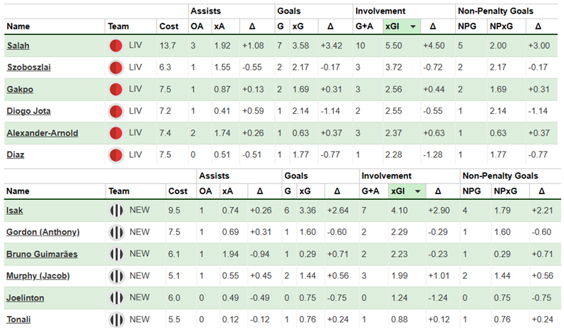 Over their last six Gameweeks, these are both sides’ best players for expected goal involvement (xGI):