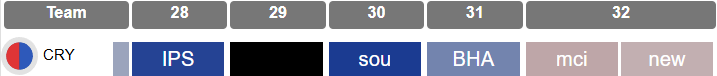 | Arsenal v Crystal Palace | Possible blank | If Crystal Palace progress to the FA Cup semi-finals |