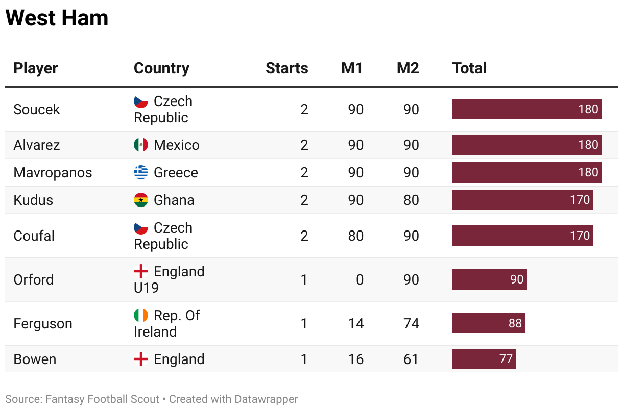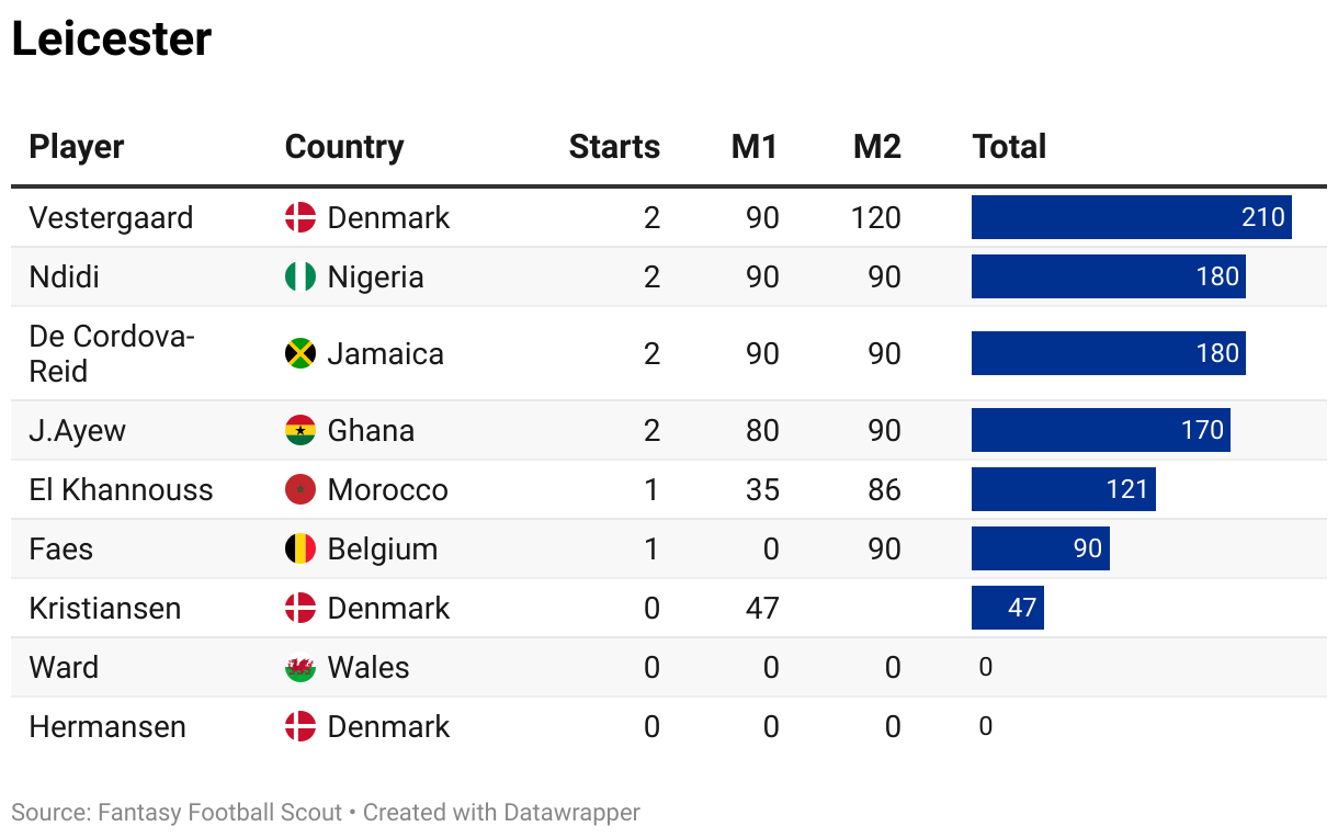 It should be said that both late returns and accumulated minutes may be less of a concern in Gameweek 30 than they usually are. The Premier League doesn’t resume till next Tuesday, rather than this weekend, so there is a bit of extra breathing space and recovery time in this instance.