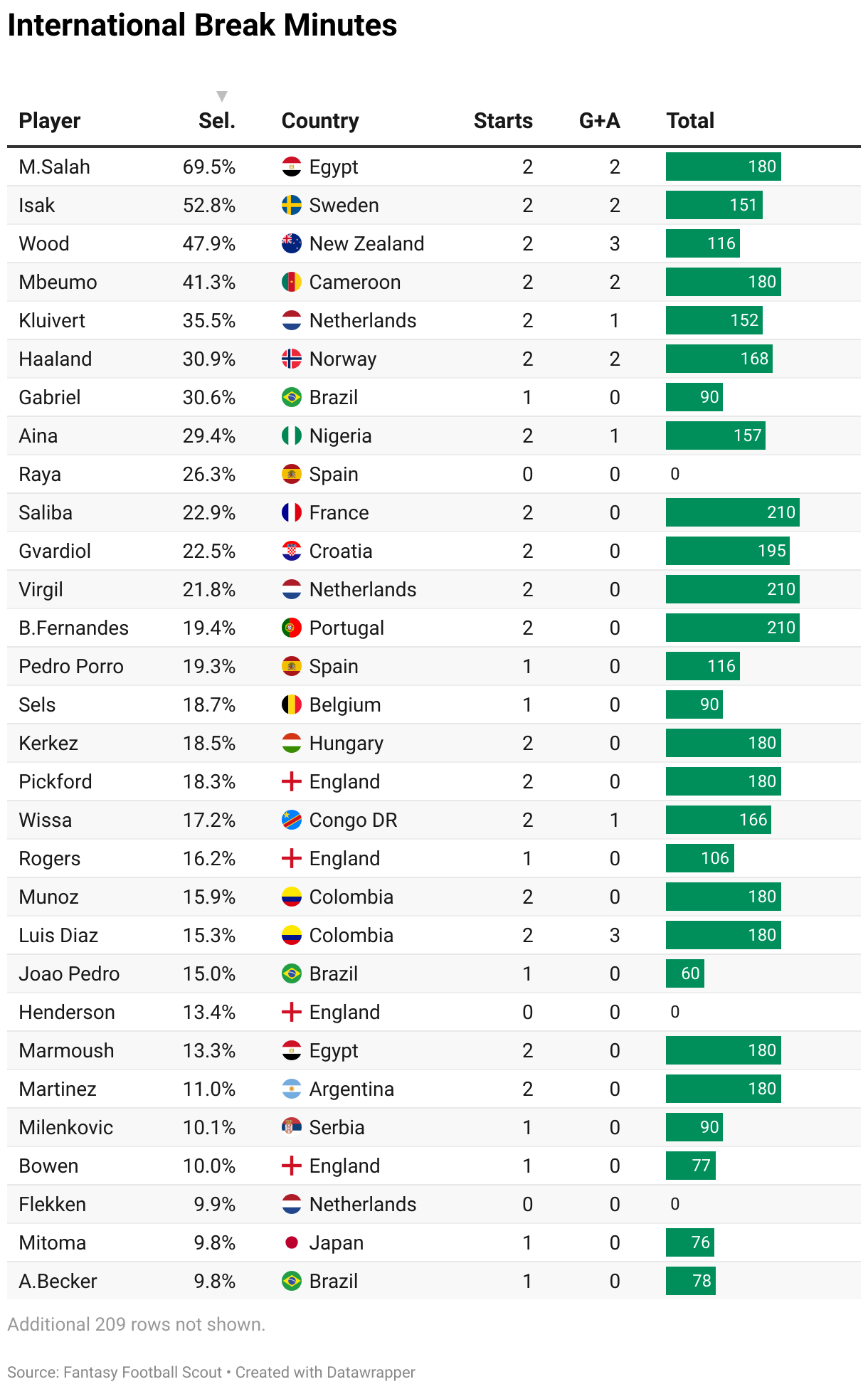 In this piece, we tot up how many minutes each FPL asset clocked up while on international duty.