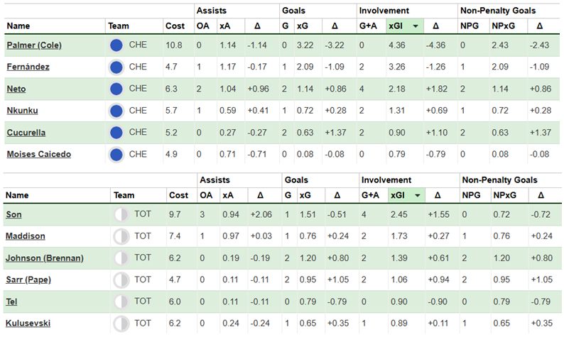 Over their last six Gameweeks, these are both sides’ best players for expected goal involvement (xGI):