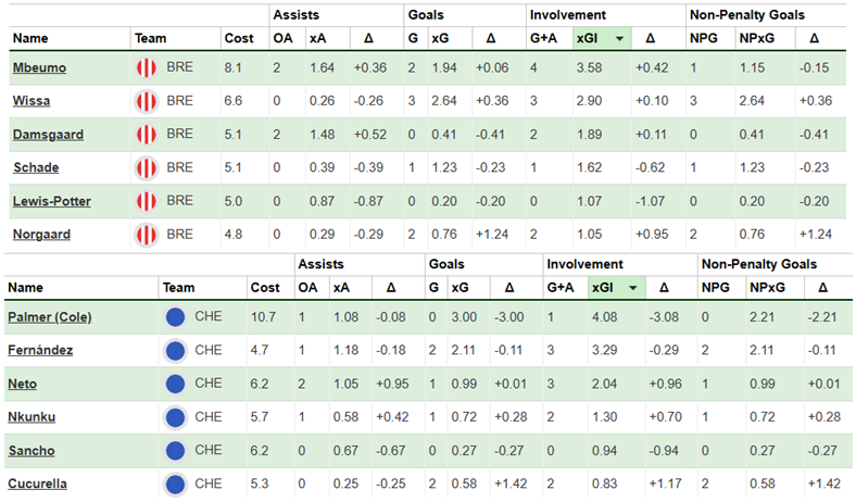 Over their last six Gameweeks, these are both sides’ best players for expected goal involvement (xGI):