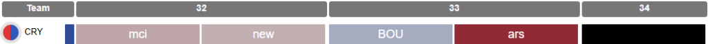 The same is not true of Glasner, who features four times over the next two Gameweeks but then blanks in Blank Gameweek 34 due to Palace’s FA Cup semi-final.