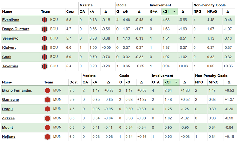 Over their last six Gameweeks, these are both sides’ best players for expected goal involvement (xGI):