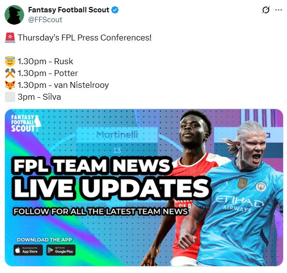 Ruud van Nistelrooy, Graham Potter, Marco Silva, Kieran McKenna and Simon Rusk faced the media on Thursday, with the headline team news from these pressers in the article below.