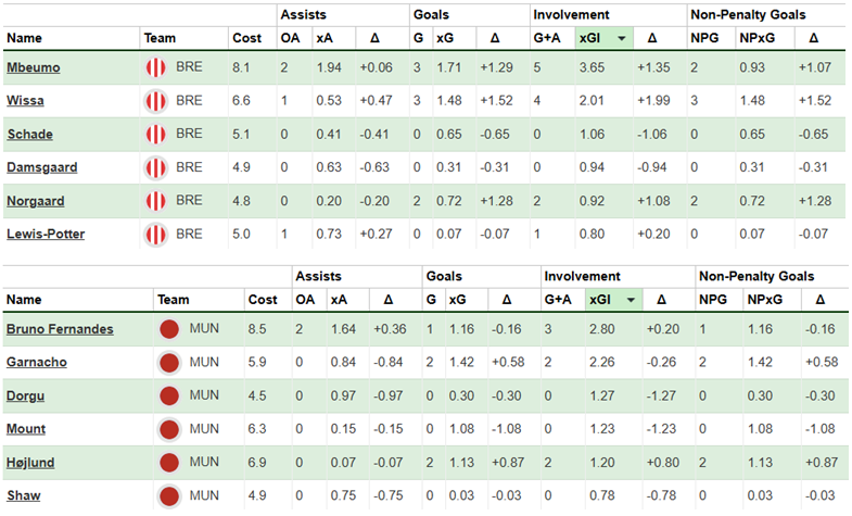 Over their last six Gameweeks, these are both sides’ best players for expected goal involvement (xGI):