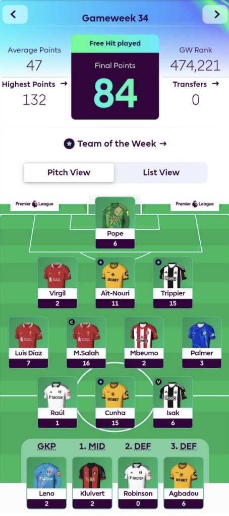 Gameweek 34 Review
