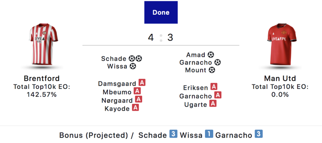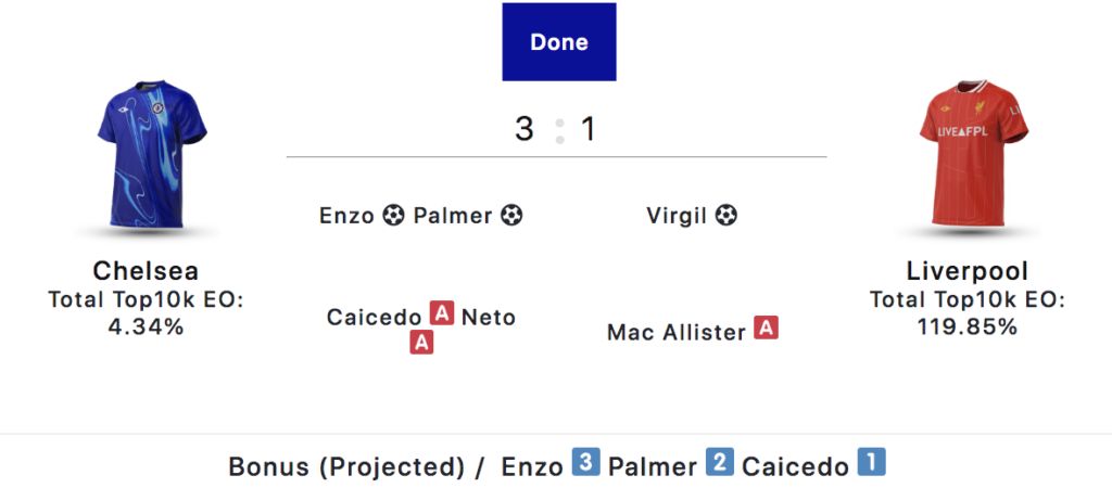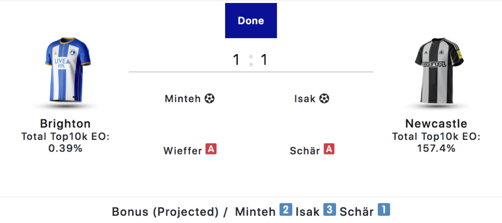 Meanwhile, the attacking returns and bonus points are from LiveFPL. A reminder that these are the ‘current’ bonus projections and therefore could be revised over the next 24 hours or so.
