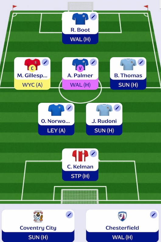 The experienced 34-year-old Oliver Norwood (M) is a firm favorite this gameweek, bringing consistent returns through three goals (+18), five assists, and a remarkable 40 interceptions (+80) for Stockport County. His recent scoring form further boosts his potential in the upcoming fixture against Leyton Orient (A), and is on all set-pieces.