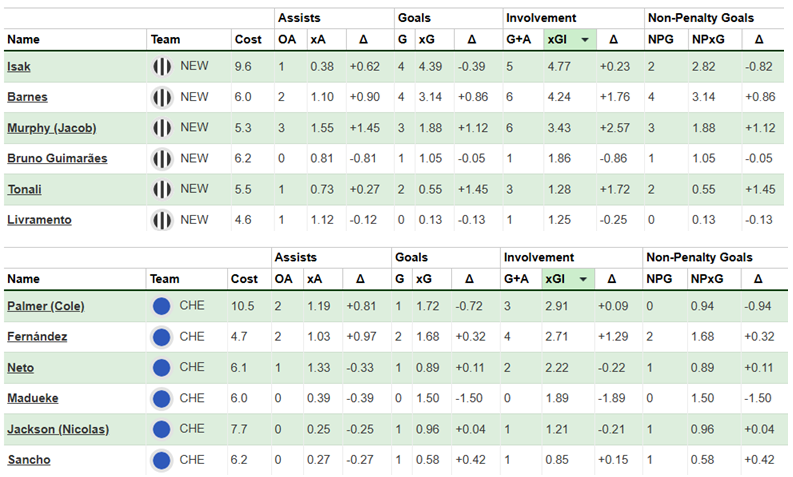 Over their last six Gameweeks, these are both sides’ best players for expected goal involvement (xGI):