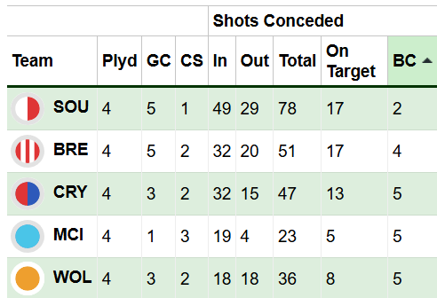 Over the last four Gameweeks, they’re the best Premier League team for big chances conceded (BC below)!