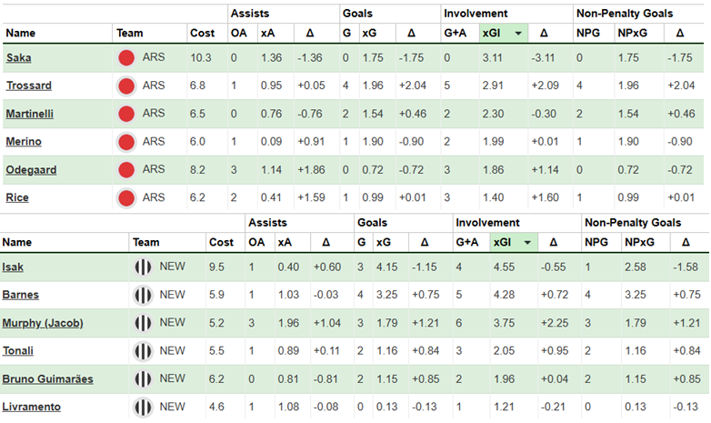 Over their last six Gameweeks, these are both sides’ best players for expected goal involvement (xGI):
