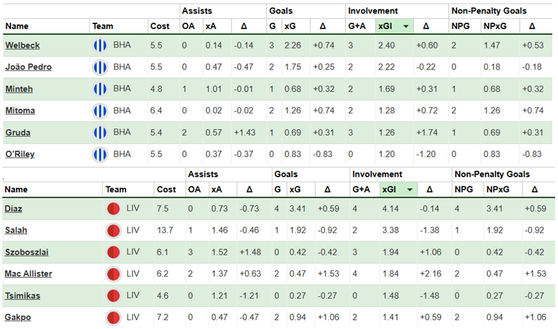 Over their last six Gameweeks, these are both sides’ best players for expected goal involvement (xGI):