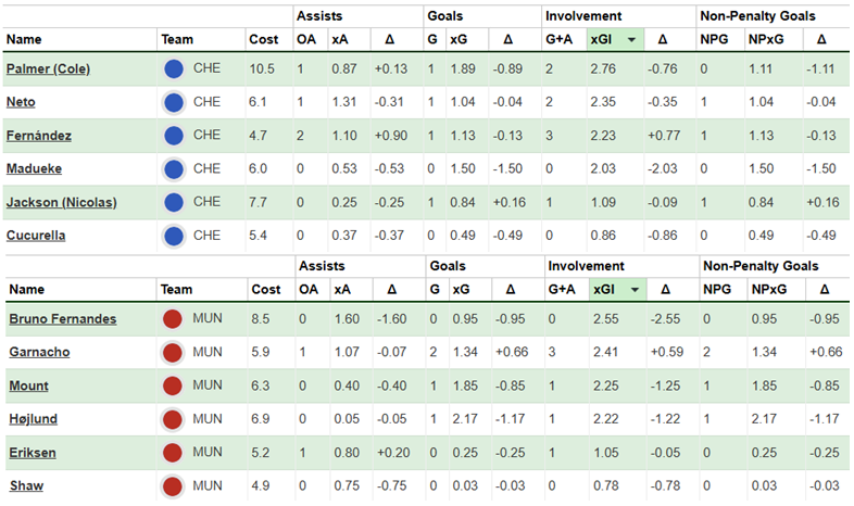 Over their last six Gameweeks, these are both sides’ best players for expected goal involvement (xGI):