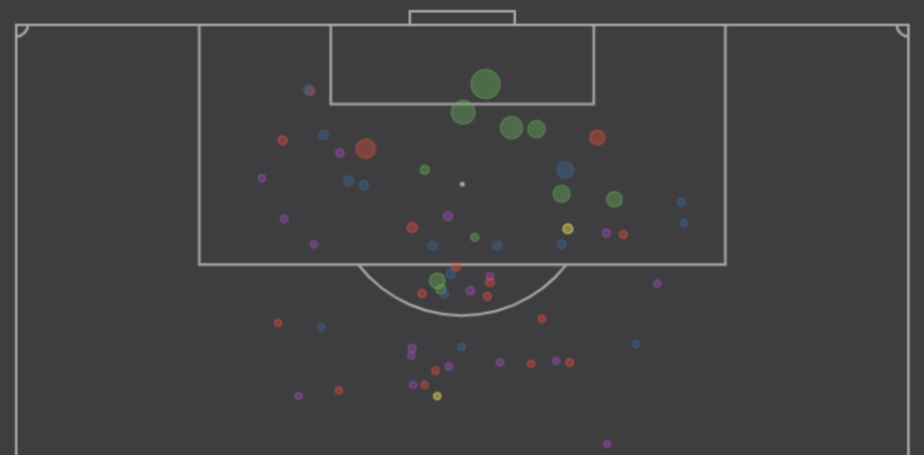 Above: Tijjani Reijnders’ open play shot map in 2024/25 (league only), via Understat