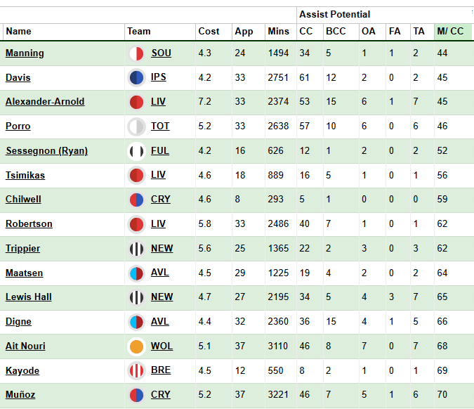 Among defenders with more than 500 minutes to their name, Kayode featured among the 15 best defenders for minutes per chance created (M/CC):