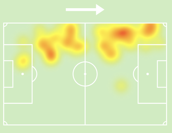 Above: Joaquin Piquerez’s touch heatmap v Porto in Matchday 1, via Sofascore