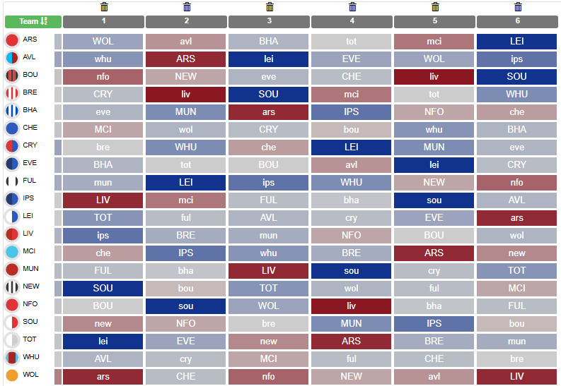 Fantasy Football Scout subscribers can use this helpful tool to pick out favourable runs of matches for each club. They can also sort by rotation pairings, use their own customised fixture difficulty ratings and more.