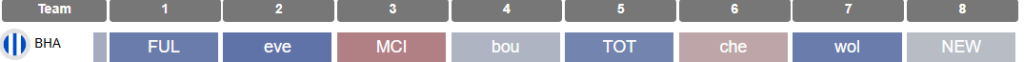 The next consideration is fixtures. Albion don’t really have a stand-out run per se; Gameweeks 10-17 was about the best we could pick out, but even that isn’t ideal.
