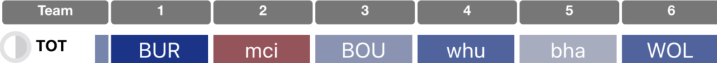 Manchester United, Crystal Palace and Brighton and Hove Albion find themselves at the wrong end of the Season Ticker in Gameweeks 1 to 6, but if used as part of a defensive rotation, Patrick Dorgu, Marc Guehi/Chris Richards and Maxim De Cuyper could still be useful picks.