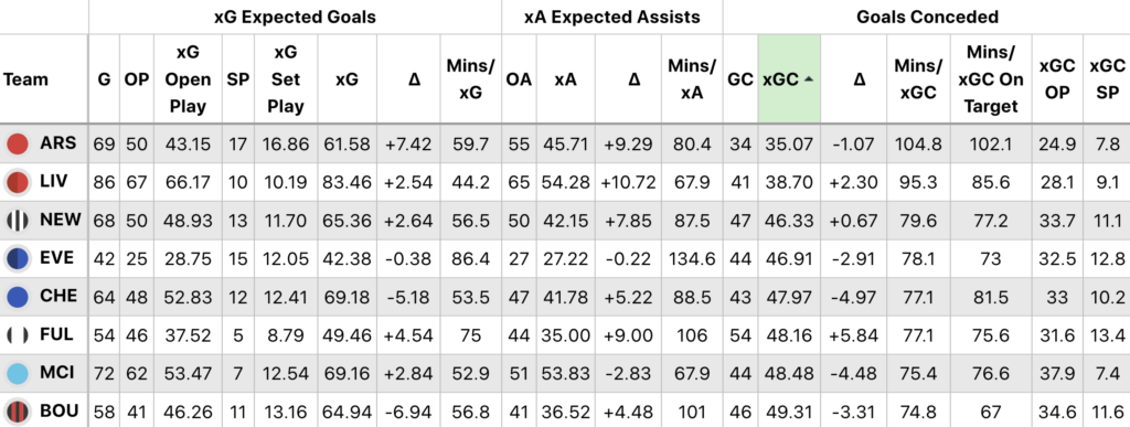 The underlying numbers were decent in 2024/25, too, as they ranked eighth for xGC: