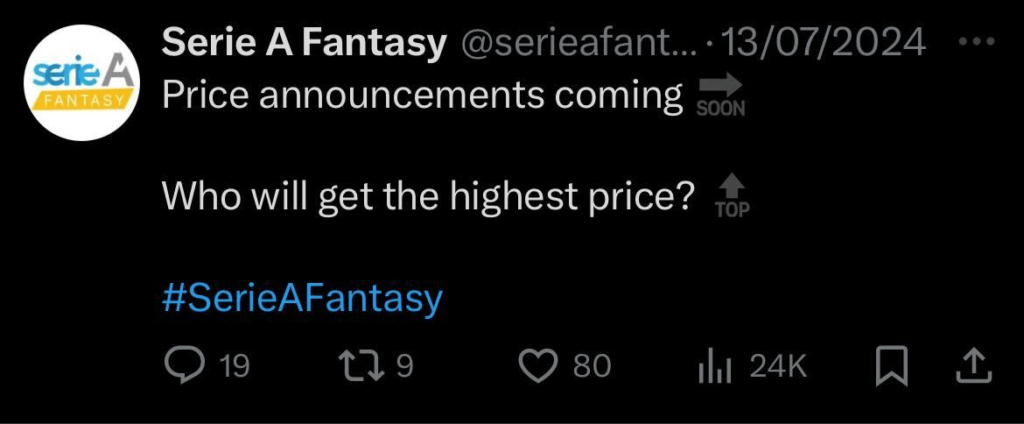 Interestingly, a week before the game went live last season, Serie A Fantasy posted that their would be price reveals dropping.
