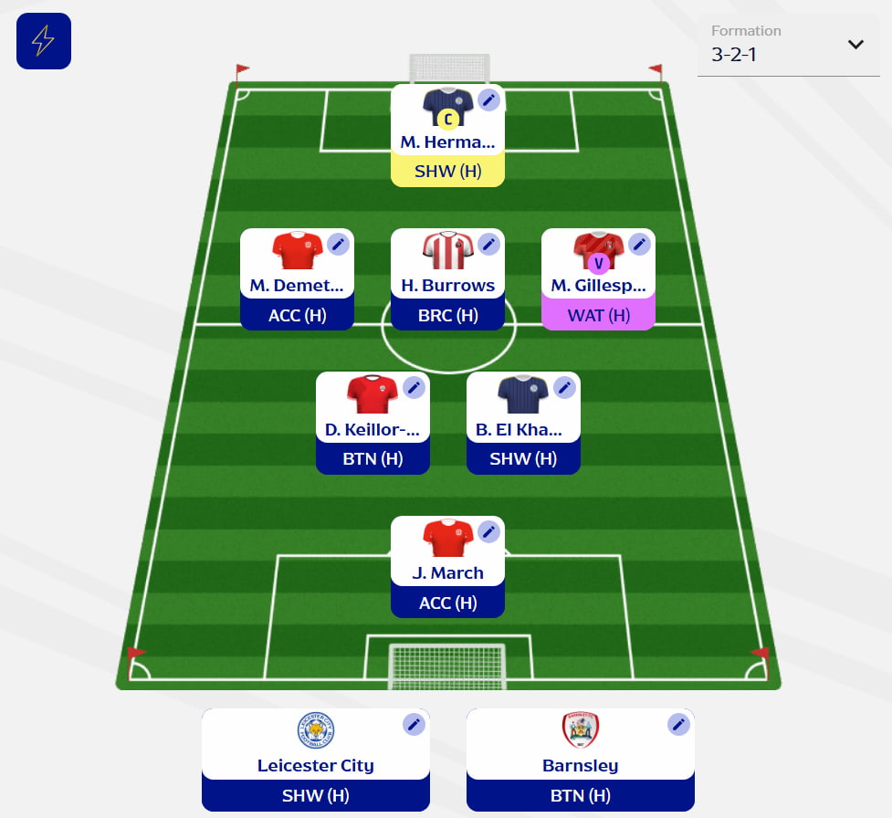 Leicester should completely dismantle Sheffield Wednesday this week, so the clean sheet looks locked. Their defender options aren’t great, so I’m opting for Mads Hermansen (G) in goal.