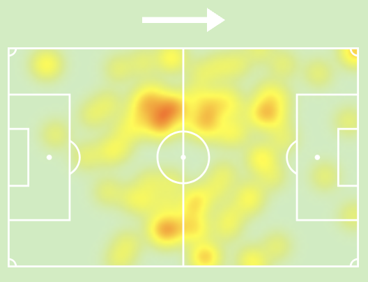 Above: Bruno Fernandes’ touch heatmap v Fiorentina on Saturday, via Sofascore